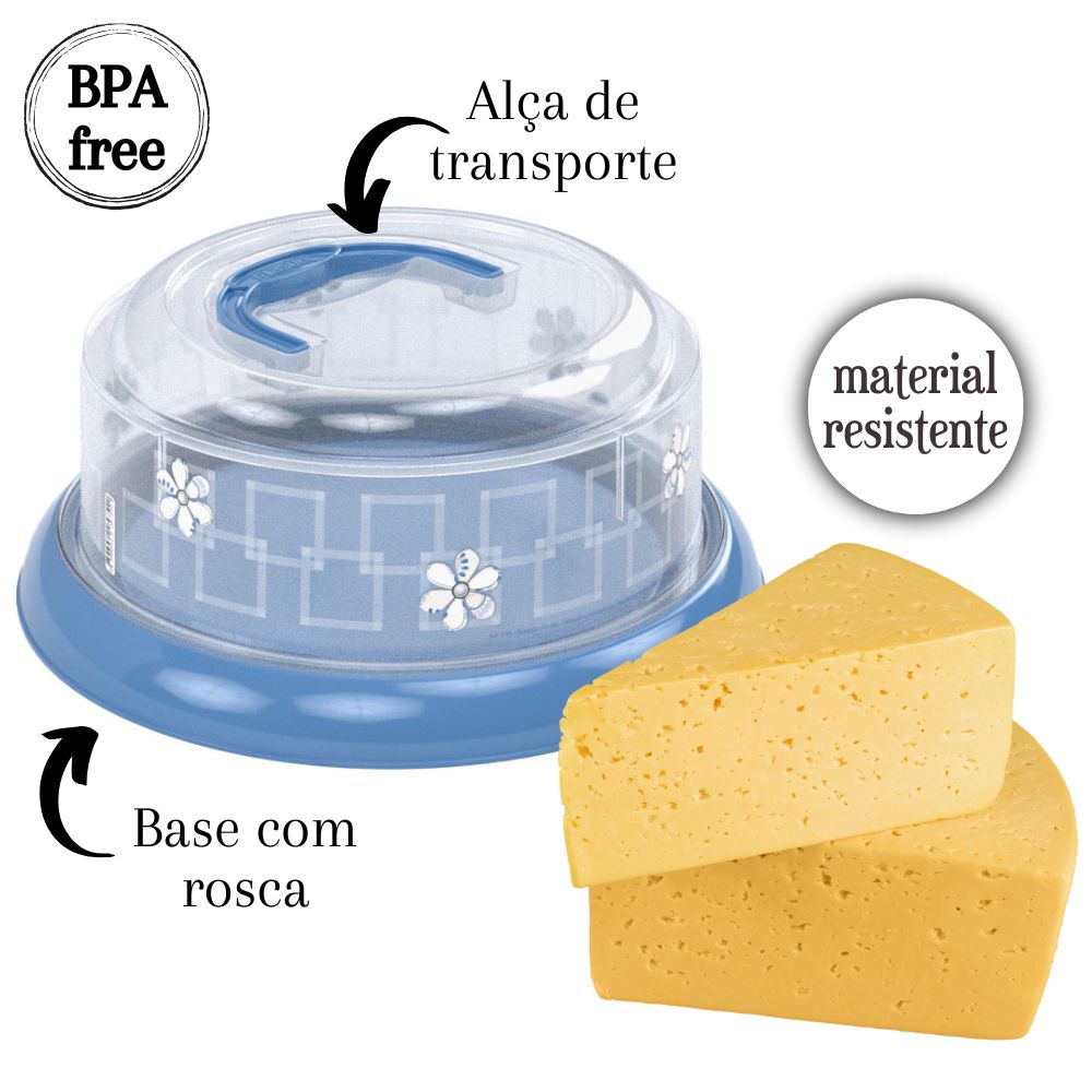 Conjunto com 1 boleira e 1 queijeira de plástico. Os produtos possuem base com rosca e alça superior para transporte. Além disso, são produzidos em plástico atóxico e livre de BPA (BPA Free). Desta forma, podem ser levados ao freezer e ao micro-ondas. Contam ainda com decoração exclusiva que utiliza a tecnologia intra imagem, o que garante vida longa ao desenho, sem desbotar ou apagar com o uso.