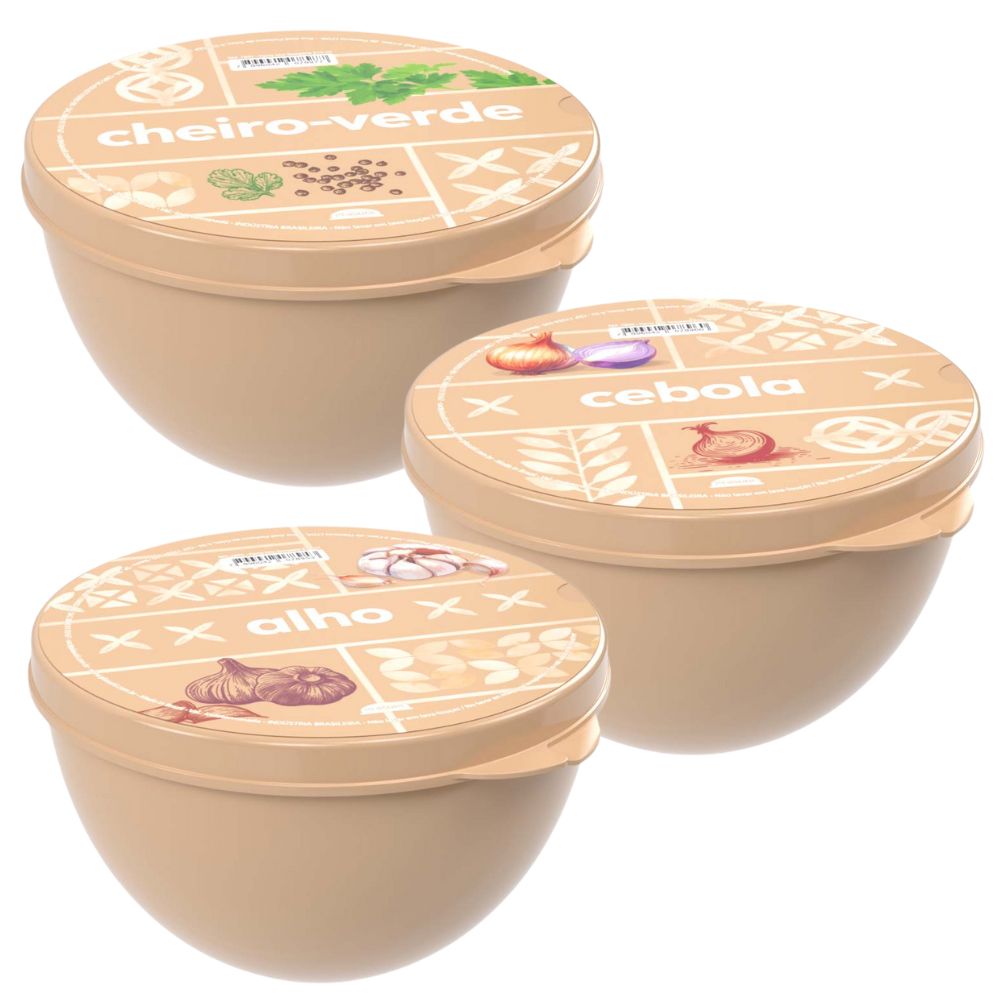 Kit porta temperos alho + cebola + cheiro bege Plasutil